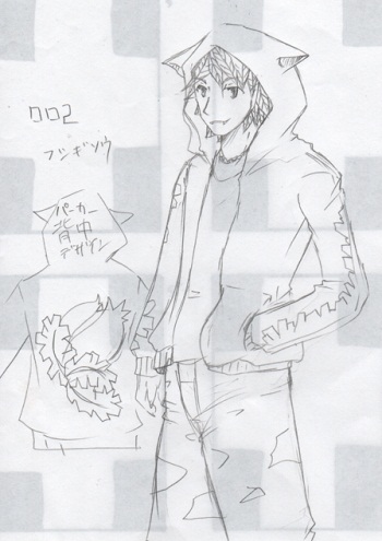 目つききつめにして耳が変わっててもってたパーカー着せて見ただけという